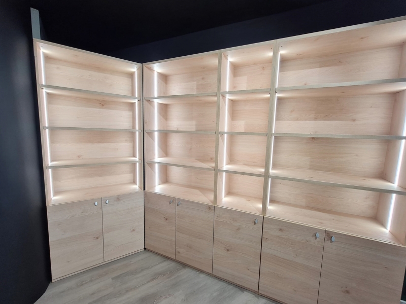 Oltre all’estetica, Vetrina Lux punta sulla praticità: anta con cerniere a lunga durata, ripiani regolabili in altezza, piedini livellanti e opzioni di fissaggio. La manutenzione è semplice grazie a superfici resistenti e a un accesso rapido all’impianto LED. Nelle composizioni negozio, le teche dialogano con espositori da vetrina per negozio, banchi e pannellature, costruendo percorsi visivi coerenti che favoriscono cross-selling e impulsi d’acquisto.