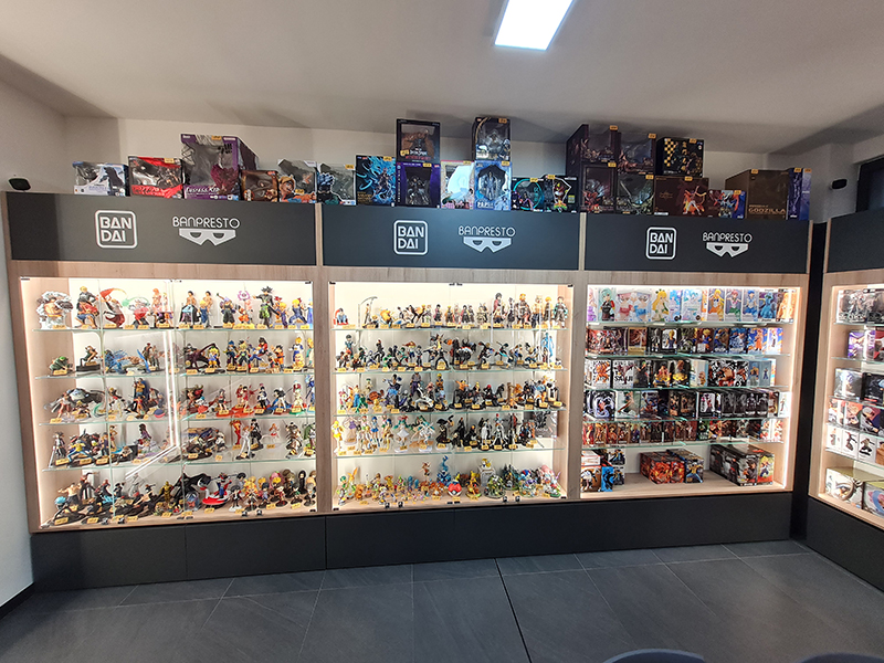 La collezione include versioni a parete, a pavimento e vetrinette espositive da banco: ideali come vetrinetta espositiva fumetteria, come teca accanto al banco cassa o in vetrina esterna. Il design minimalista – profili sottili, cavi nascosti, LED integrati – rende la vetrina per fumetteria e per negozi di giochi un vero elemento d’arredo. L’illuminazione è calibrata per valorizzare packaging, card slab e miniature; su richiesta sono disponibili temperature colore e dimmer per scenari evento e orari serali.
